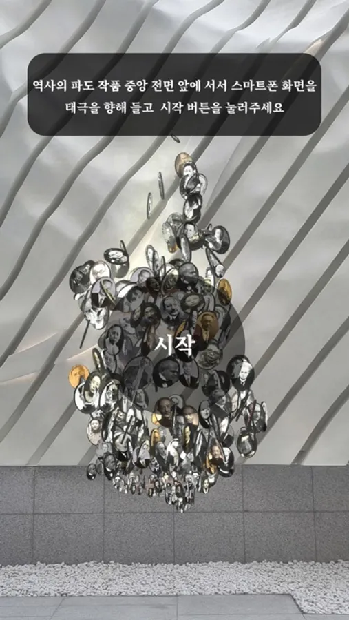 AR(증강현실) 콘텐츠는‘역사의 파도’ 조형물 전면에 자리 잡고 있으며, 스마트폰을 통해 관람할 수 있다.