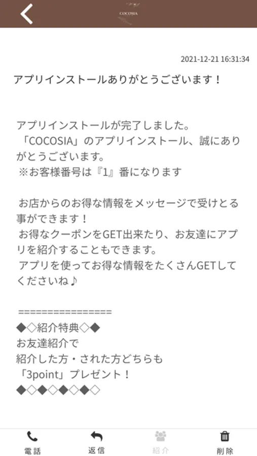 COCOSIAのアプリをSNSを通じてお友達に紹介する事ができます。