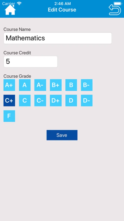 - Enter the Grades and Credits for each course and Save on Calculate.