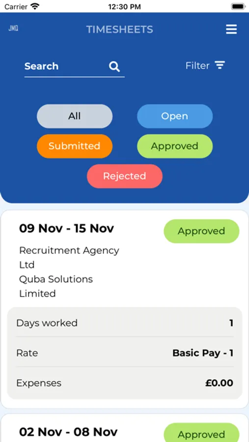 Allows JMQ's clients to submit and approve timesheets conveniently from their mobile device. Candidates can submit units of work, clients can approve/reject with notifications.