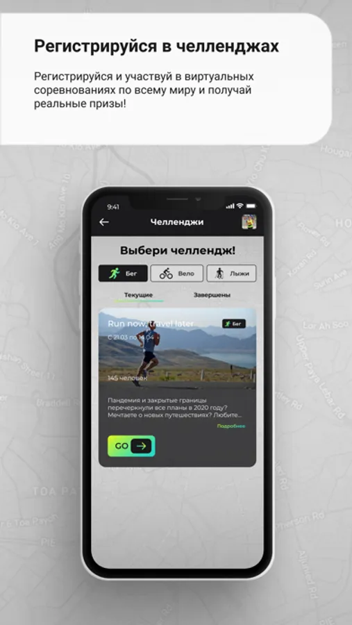 - зарегистрируйся в одном или нескольких открытых челленджах, на одной или несколько дистанциях;