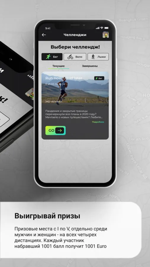 В начальной версии - бег, далее добавятся велосипед, лыжи, горные лыжи и т д, с фантастическими призами по итогам челленджа. Чем больше и успешнее участвовать в мероприятиях на платформе, тем больше баллов можно набрать и больше призов выиграть, а при достижении отметки в 1001 балл – КАЖДЫЙ участник получит денежный приз – 1001 EURO.