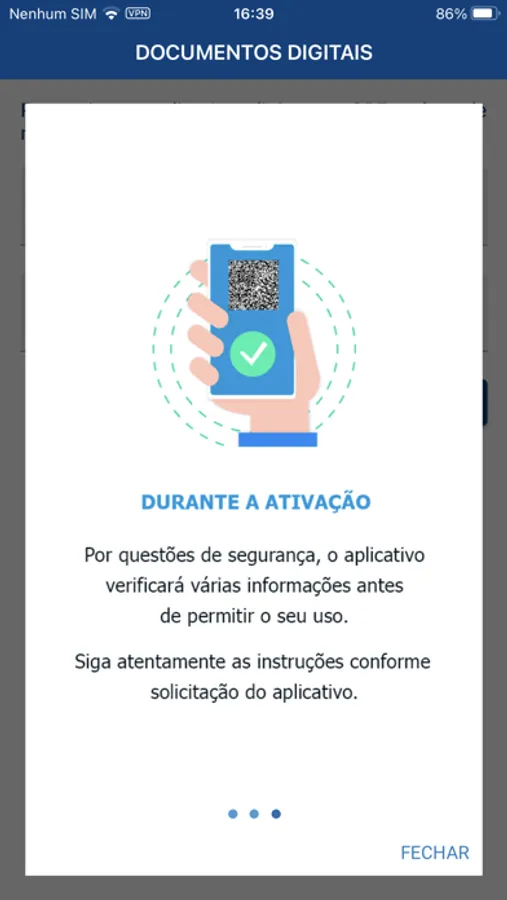 A ativação e a sua utilização é feita através da leitura do QR code impresso no documento físico.