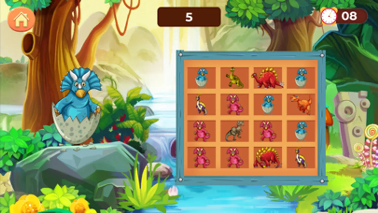[Color Dino]: On the screen is a table of n * m cells with different types of dino. Outside the frame will be the sample color, your task is to find in the board the dinosaur with the same color as the given color in 10 seconds.