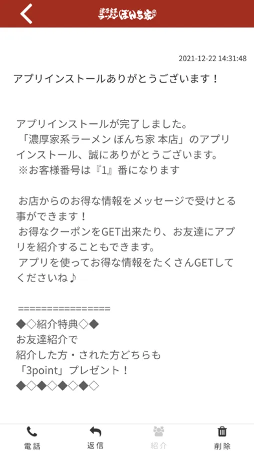ぼんち家のアプリをSNSを通じてお友達に紹介する事ができます。