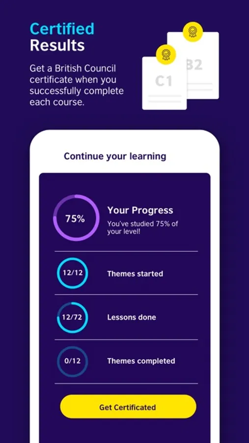 • Track your progress, collect English Online badges of achievement and download your certificates.