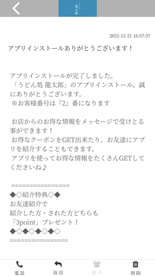龍太郎のアプリをSNSを通じてお友達に紹介する事ができます。