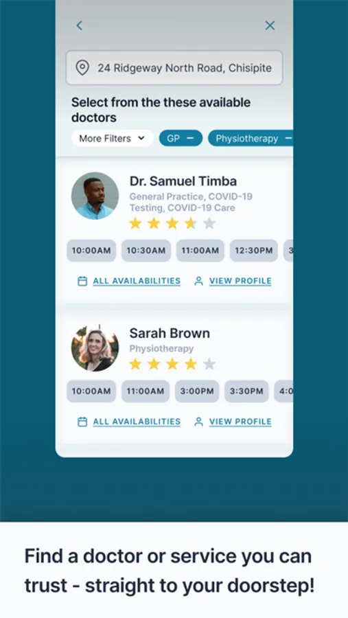 Browse our practitioners and services to get the kind of help you need, straight to your doorstep. We have a wide range of assistance available from General Practitioner, to COVID-19 care, to Physiotherapy and Dietician advice.