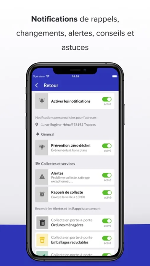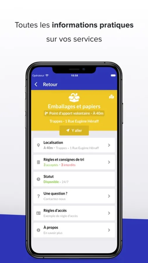 Tous les services et infos pratiques qui vous sont proposés sont personnalisés en fonction de l'adresse que vous aurez renseignée dans l'appli.