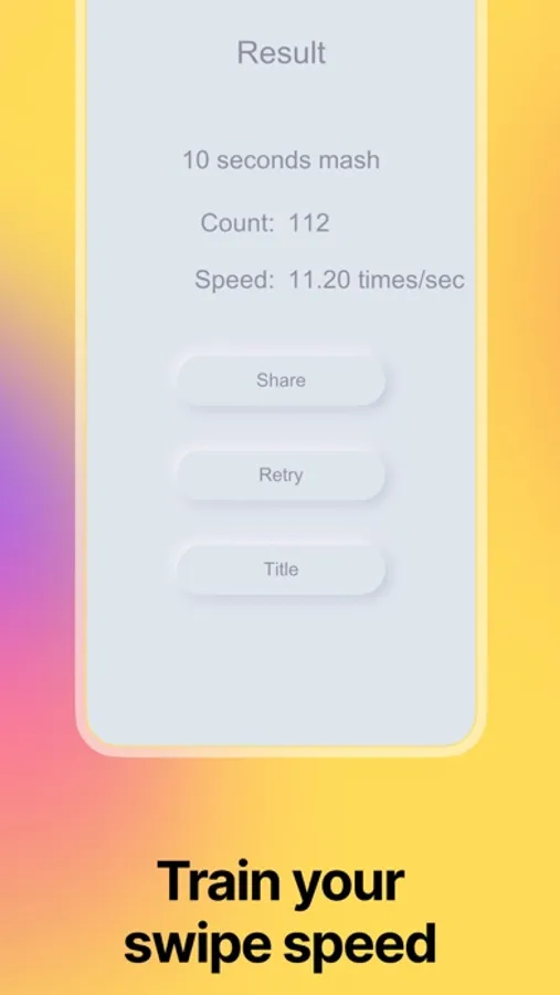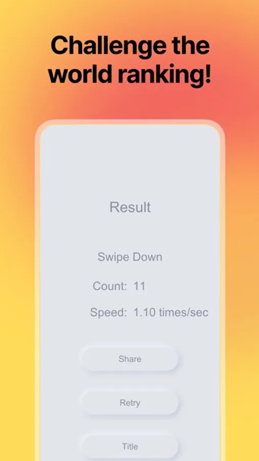 We'll measure your swipe speed in "Swipe Down", "Swipe left and right", "Swipe up and down", "Swipe up, right, down, left", and "Swipe down for 30 sec."!