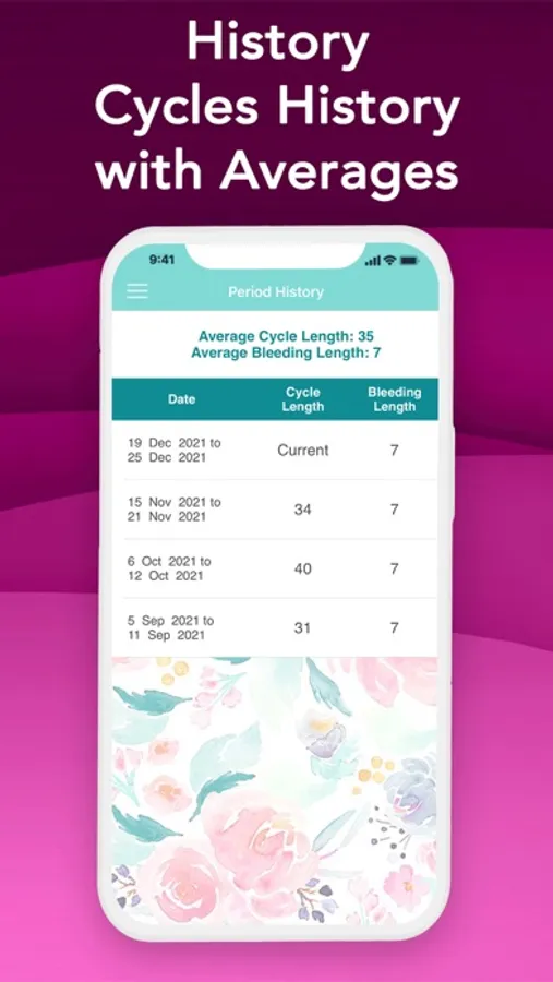 The app also records your entire period history, so you can see you past cycles as well as your average cycle and bleeding length.