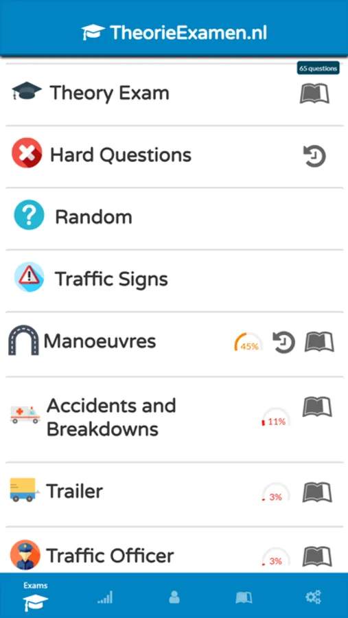 - Learning system: questions you haven't had before or questions you have difficulty with are asked more often. You will learn much faster with the learning system!