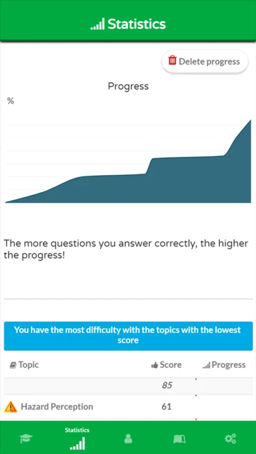* Progress: keep track of your progress visually with the bar and the graph