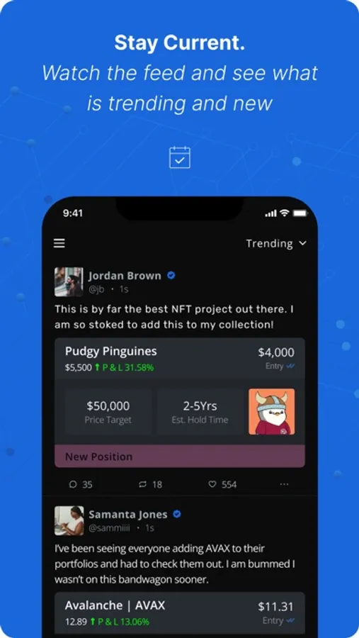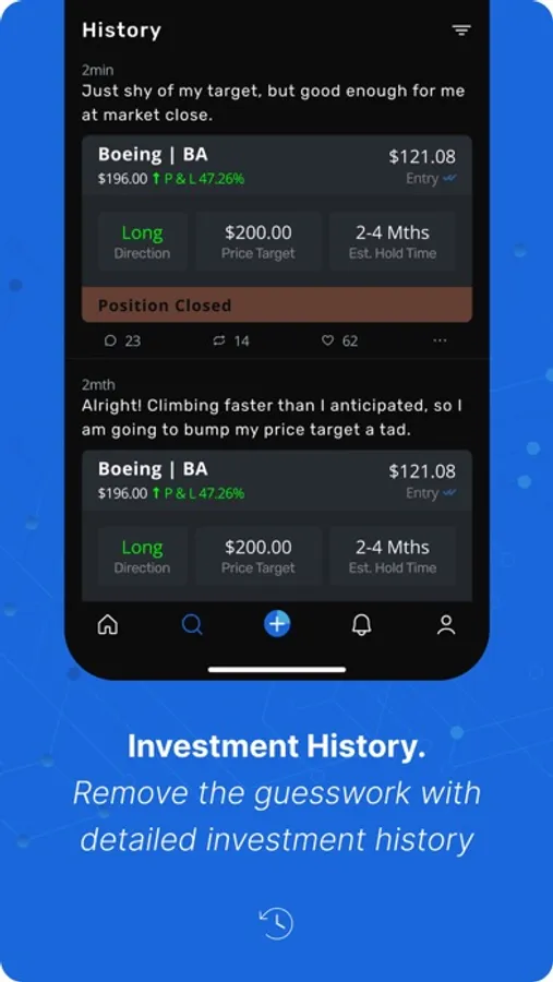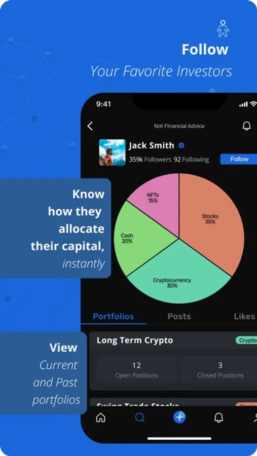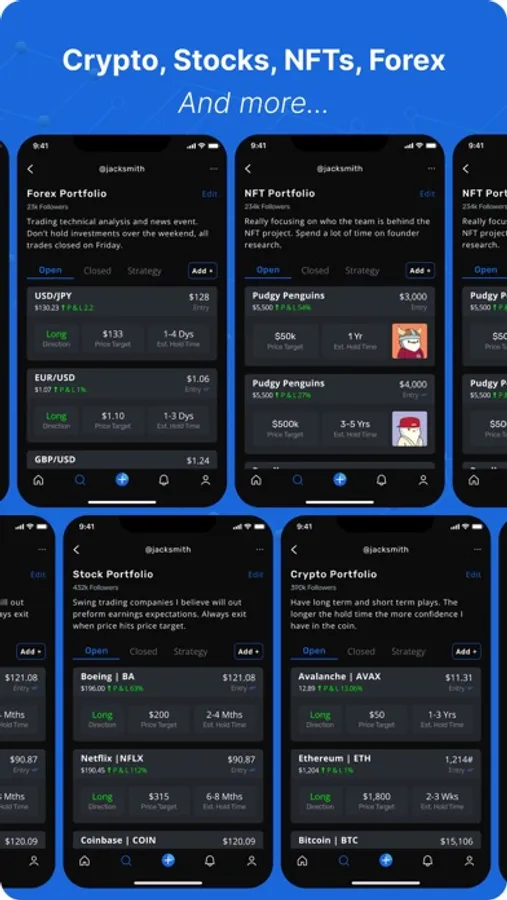 - Users can create portfolios and share their investments or trades, highlighting their price targets, hold times, and strategies.