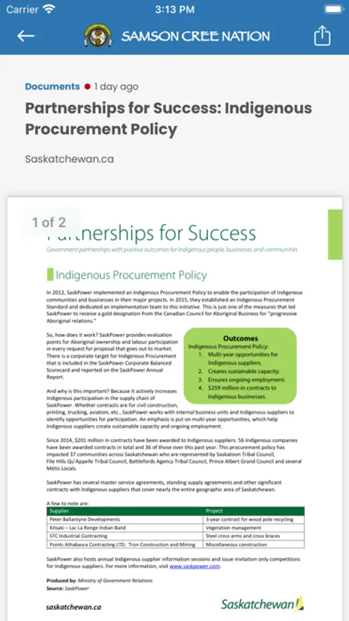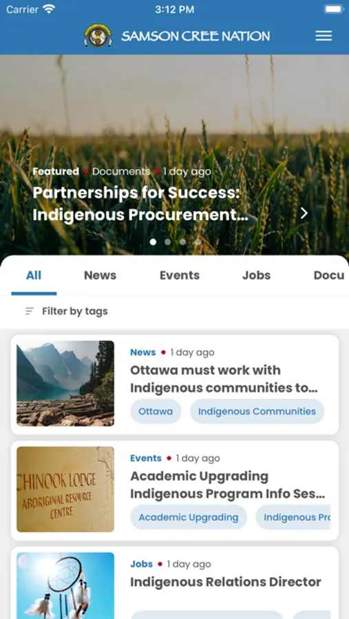 Receive up to the minute news/events, submit custom forms, gain access to important documents and receive personalized communications directly from the Samson Cree Nation Office. The Samson Cree Nation application has put all of these functions into one easy to use package for our members.