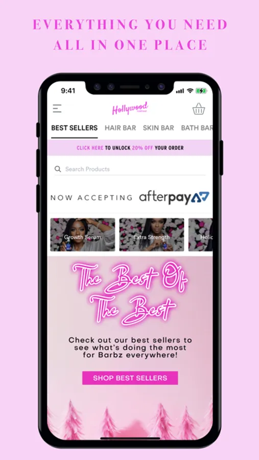Welcome to the HOLLYWOOD HAIR BAR App! Discover the # 1 Hair Growth Products on the market! With over 1 Million Bottles Sold! Join Our Clique and let's GROW YOUR HAIR! Enjoy Exclusive Launches, Hair Growth Tips & Tricks ; along with Discounts & Deals on The Best All Natural Beauty Line on the Market!