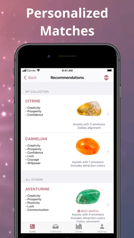 * Track your personal collection. By doing so, recommendations will also highlight crystals you have on hand