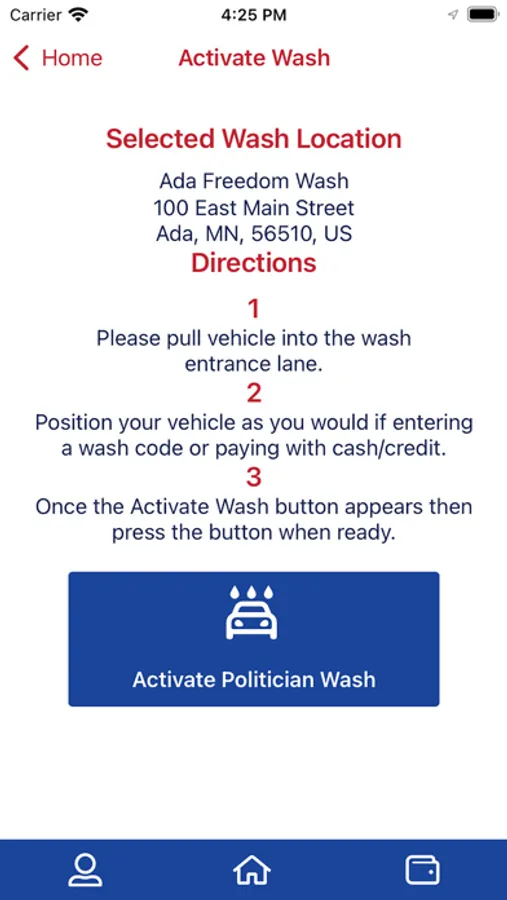 Touchless car wash located in Ada, MN on State Hwy 9 and State Hwy 200 underneath the big American flag that offers multiple wash packages and prices. Gift cards and membership cards available upon request that can be tailored to your wash needs. Pet wash station on site as well as gas and diesel pumps and 24 hour vending.