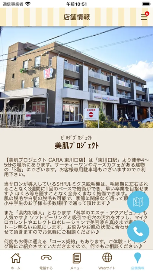 店舗のマップが表示され、地図アプリとも連携しているので、初めてのご来店の時も簡単に見つけることができます。