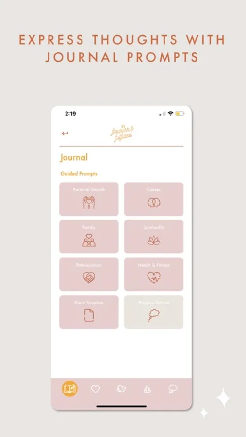 Record your inner thoughts and feelings, express gratitude, and identify any limiting beliefs with your in-app creative space. Create your own journal entry, or use the journal prompts to dive deeper into your personal growth, relationships, health, spirituality, family life, and career.