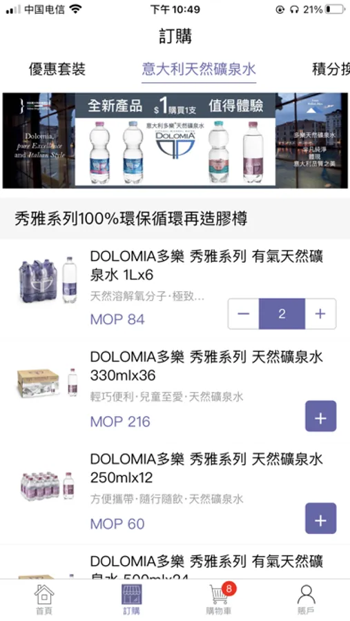 #提供意大利天然礦泉水DOLOMIA訂購及送貨服務。