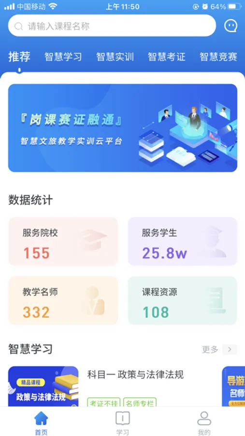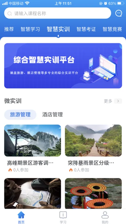 知旅云智慧文旅教学实训云平台(简称“知旅云”)依托非凡多年来丰富的教育资源积累和行业经验总结,是国内旅游教育领域第一个综合教学实训平台。知旅云平台提供丰富的在线课程资源,资源内容包含PPT、PDF、Word、视频资源、随堂练习题等多种资源形式,涵盖旅游类、酒店类等课程方向,有效满足高校学生多样化的学习需求。平台包括智慧学习中心、智慧实训中心、智慧考证中心、智慧竞赛中心四大核心功能,从课程学习、技能实训、资格证考试、技能大赛方面入手,通过岗、课、赛、证融通四位一体人才培养模式加强课程的综合性和实践性,重视实践课教学,培养学生实际操作能力