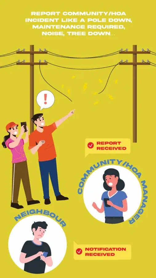 2. Report HOA issues - Pole down, ponding, complaints, common pool area issues etc.