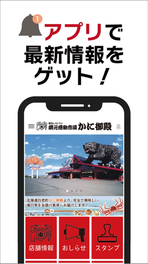 便利でお得な情報満載の 「かに御殿」公式アプリをダウンロードいただき、お得な情報をゲット!してくださいね。