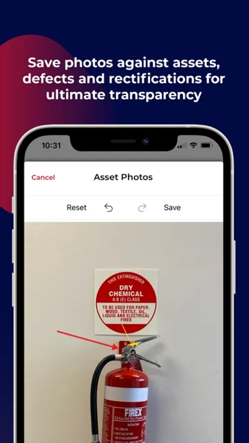 Technicians can save photos at an asset, defect and rectification level, providing evidence and greater transparency for your client. Techs fail assets against the specific prompt and can use prebuilt common responses for ease of recording and consistent reporting.