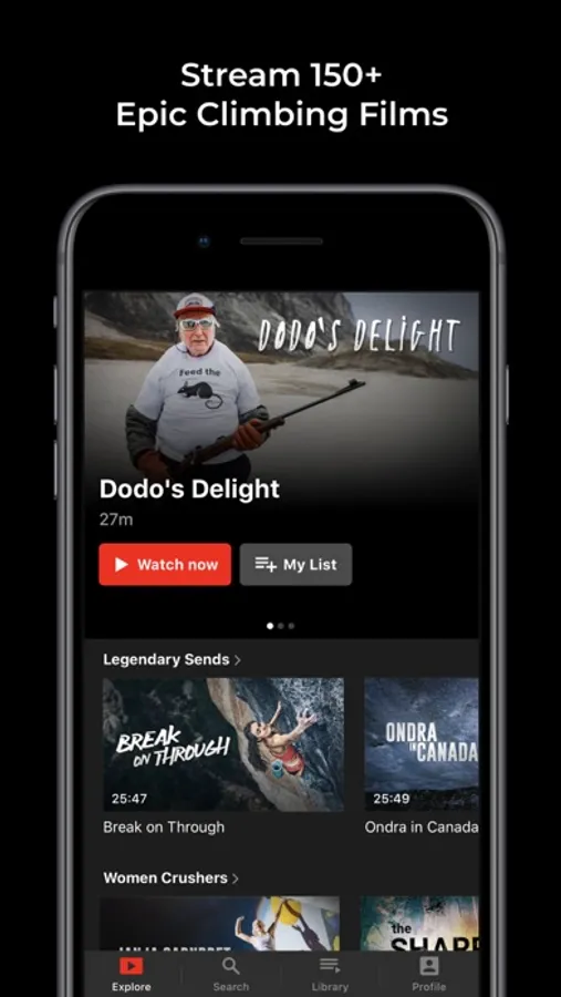 Watch films by climbing discipline. Fascinated by free soloing? It’s not just Honnold; many of the greats are featured, including Dean Potter, Ueli Steck and Steph Davis. Search by bouldering, sport, trad, alpinism, deep water solo, comps and more.
