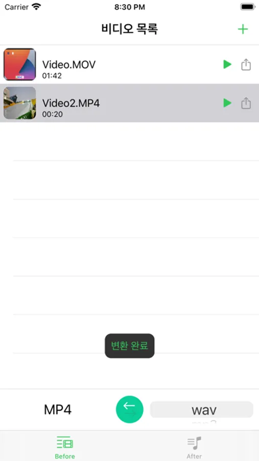 - 동영상 → 변환(wav, mp3, m4a, caf)