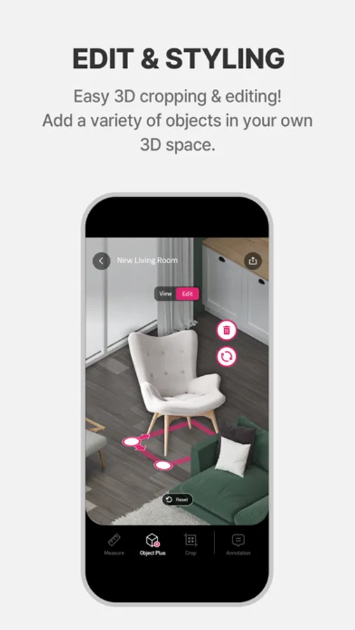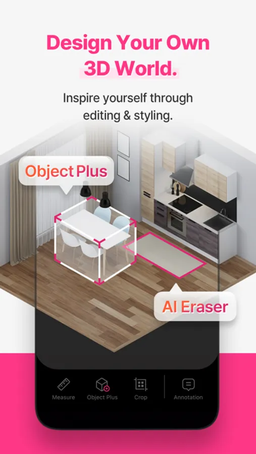 • Object Plus(Object Addition Tool): Allows users to freely place objects in 3D spaces, and planning to provide 3D models of products from various brands.