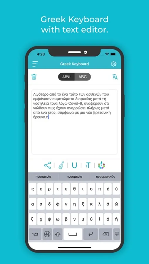 • Changing the font, the colour, underlining features inbuilt in this Greek keyboard iOS.