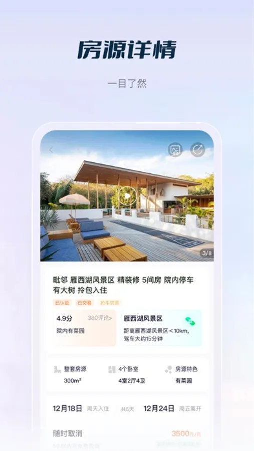 国内郊区小院、城市住宅预定平台,提供郊区小院、住宅公寓、别墅,短租房、短租公寓、月租房等多种住宿体验。性价比高,适合全家出游、出差能洗衣,带娃能做饭,全方位体验乡村美景。携家人在农村种菜养花,体验乡村文化;大学生、白领、培训、考试、求医等多样化居住需求皆可满足。国内房东直租,按月付费尽在庄家。