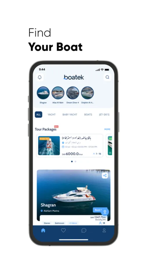 بوتك هو تطبيق سهل الاستخدام يمكن من خلاله تأجير القوارب والفعاليات البحرية بجميع أنواعها التي يتملكها ملاك القوارب والشركات بحيث يمكن للعملاء القيام بحجز القارب و الفعاليات المائية لبضع ساعات أو عدة أيام حسب اختيار العميل عبر التطبيق، يمكنك ايضا تسجيل قاربك من خلال منصة بوتك وعرض الصور والخدمات للقارب ، بحيث نقدم للعميل تجربة حجز وتسجيل سهلة الاستخدام واختيار القارب المناسب لاحتياجك وحجز الوقت المناسب لكم والاستمتاع بتجربة رائعة لاستكشاف مغامرة بحرية جديدة