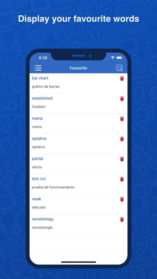 7- You can create a favourite list in our app of the translated words and can share it with anyone in their English and Spanish meaning.