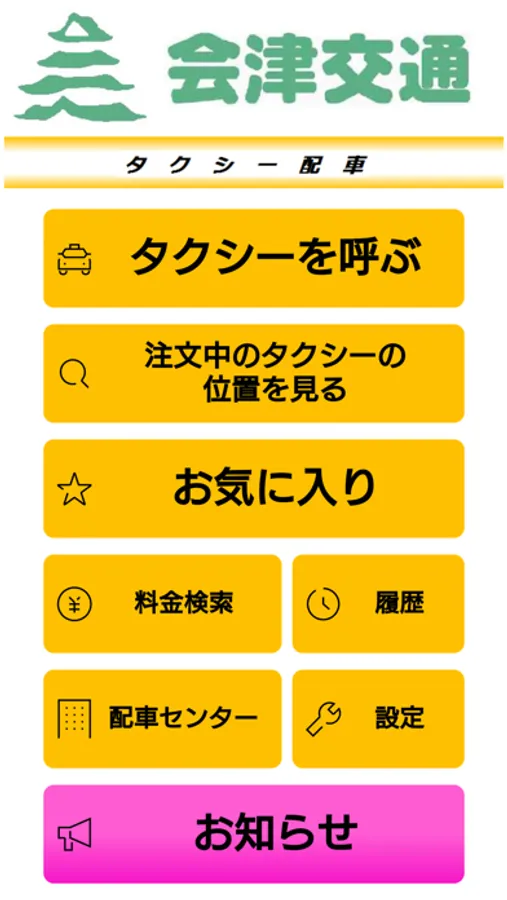 スマートフォンアプリ「会津交通タクシー配車」はお手元のスマートフォンで