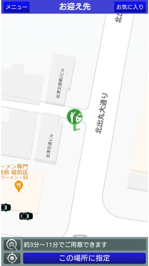 ご乗車場所を指定しタクシーを呼ぶことが出来ます。