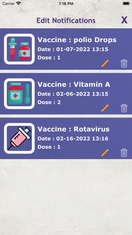 This App has been especially designed for parents to notify the important vaccination dates and keep a track of the vaccination schedules for their child. User will get notification one day before the scheduled vaccination date.