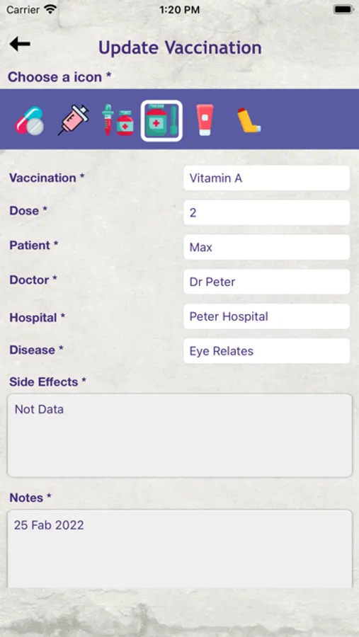 - Remarks field for each vaccination is given to enter any additional information such as doctor name and place of vaccination etc.