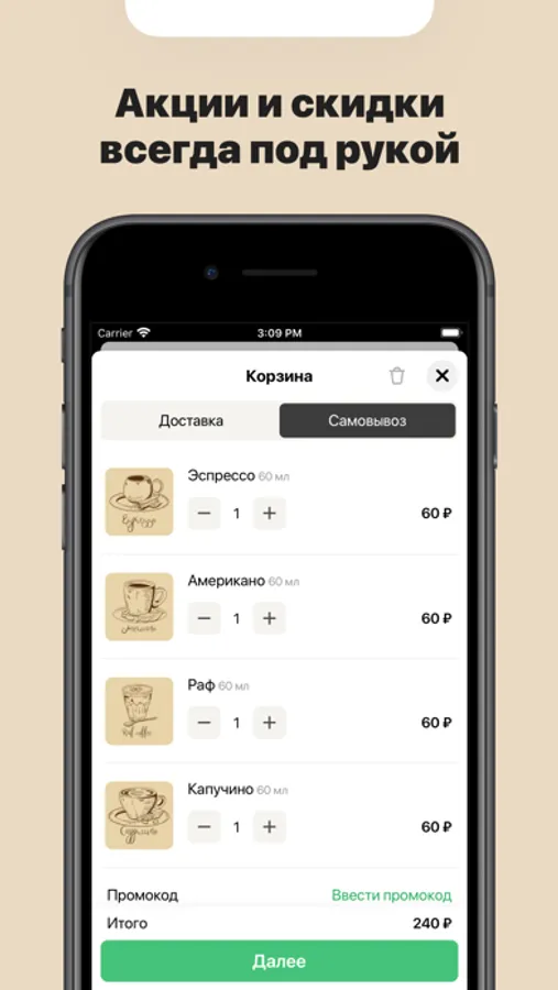 — Быстрый заказ с мгновенным подтверждением через приложение.