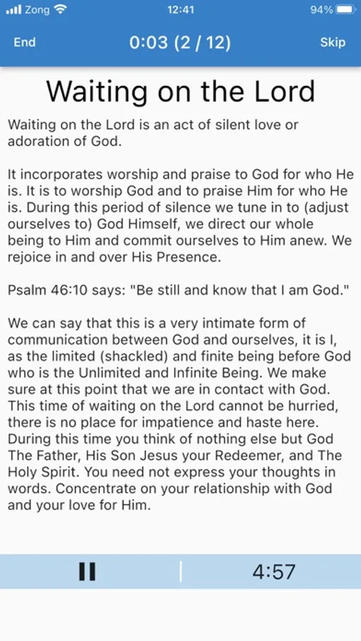 The default timer is set to use Dick Eastman's model for spending an hour of prayer.