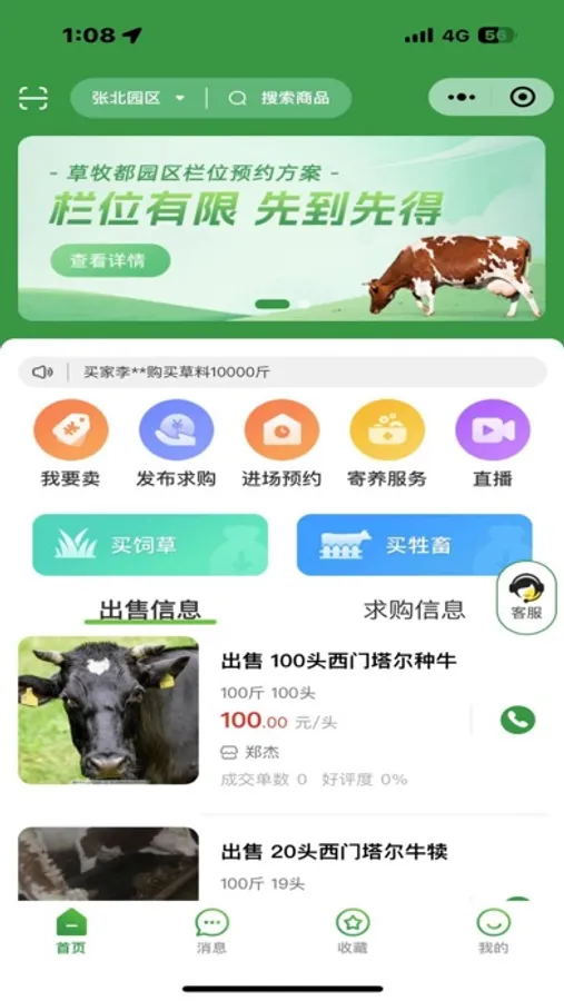 草都云 打造卖家更安心,买家更放心的交易平台(安心是经纪人有服务标准与对应的明码标价的费用,销售渠道更广,专注养好牛。放心是没有更多中间商赚差价,买到的牛可做专业体检与检疫防护,同时附有牛只的电子档案,远程可实现3d看牛,平台估价等服务)。