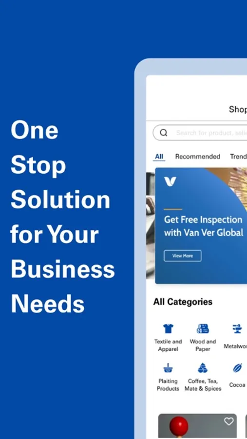 The Van Ver Global app is a B2B Trading Marketplace with Complimentary Quality Inspection Services (free of charge). One stop solution for your business needs. You can chat in real time with thousands of wholesale sellers, suppliers, manufactures, and trade professionals from Indonesia. The Van Ver Global app makes your export-import transactions easier. Log into your profile and start communicating with trustworthy first hand suppliers in Indonesia.