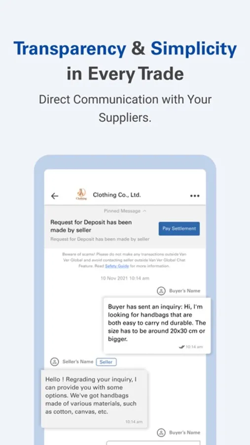 Chat: Directly connect and communicate with Sellers, encouraging transparency and simplicity.
