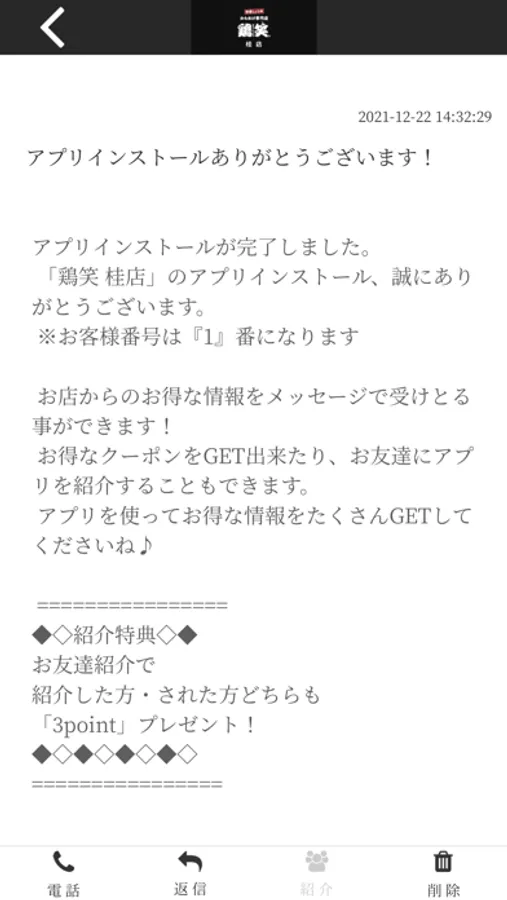 鶏笑 桂店のアプリをSNSを通じてお友達に紹介する事ができます。