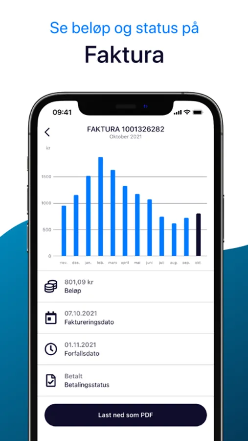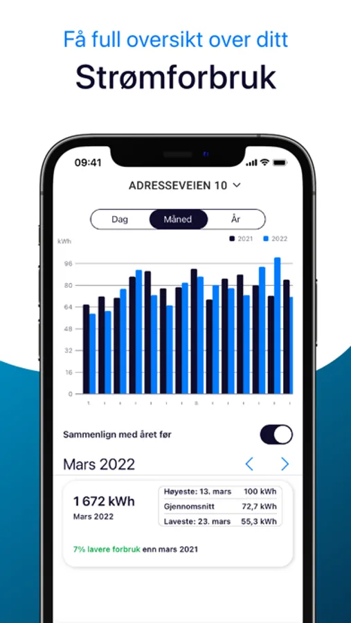 The Elvenett app gives you full overview of your customer relationship. You get an overview of your power consumption and can easily compare current and historical consumption. If you have several subscriptions and meters, all of them are available in the app. You will also find an overview of your invoices and their payment status.
