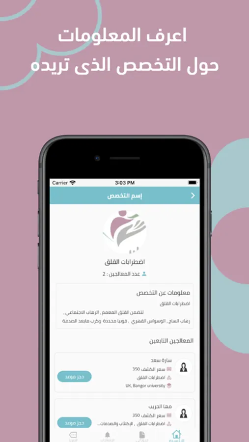 تطبيق مسرة لحجز المواعيد .. من خلاله يمكنك الاطلاع على مواعيد الاخصائية المتاحة والحجز وتأكيد الموعد.