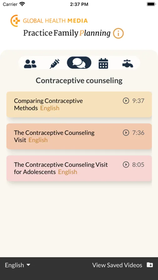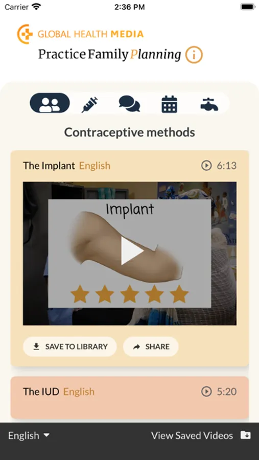 This app gives you access to 40 videos produced by Global Health Media Project. The videos offer clear, up-to-date information to help providers meet clients' needs and inform their choice and use of contraception. The videos are arranged in five topic areas: contraceptive methods, contraceptive method skills, contraceptive counseling, contraceptive support, and infection prevention. Videos are available in several languages. You can use this app to watch the videos, save them to your phone to use offline, or share with colleagues.
