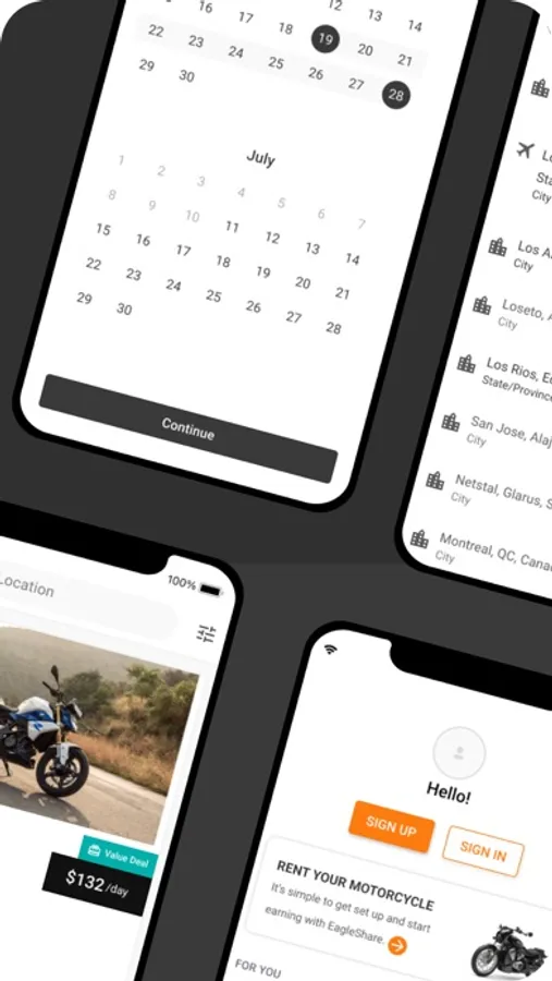 With the EagleShare App, it’s now easier than ever to book a motorcycle rental ride share in just a few minutes from your mobile device!